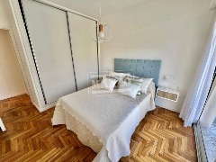 Dormitorio con cama matrimonial a la calle, con salida al balcón.