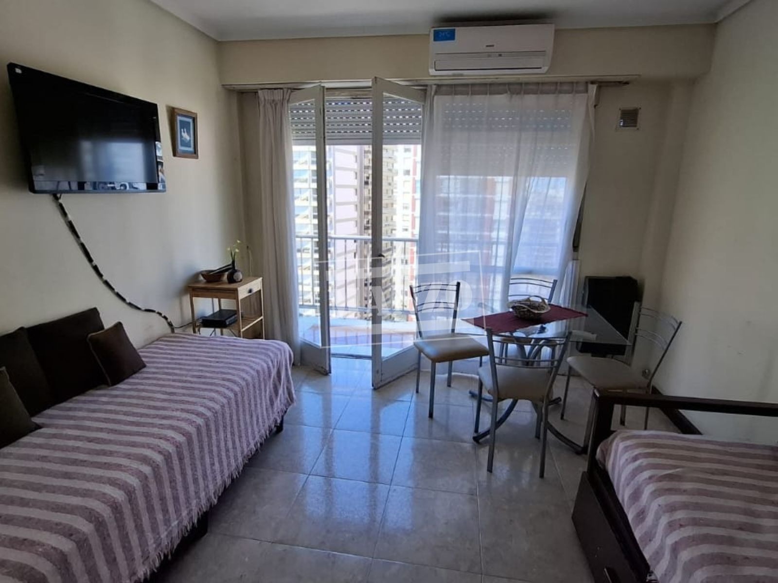Cómodo ambiente con balcón y vista al mar.