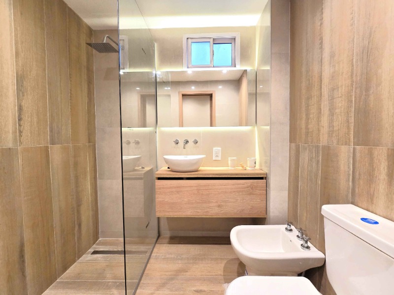 - En baño: box de ducha o pe diluvio, vanitory, griferías fv o similar, revestimiento en porcellanato
