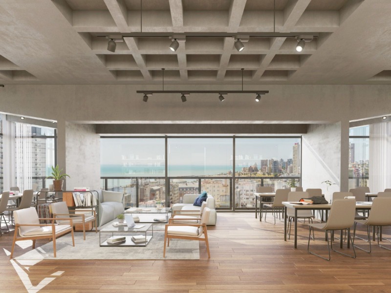 En el entrepiso encontramos dos quinchos completamente equipados; y en el 10mo piso un sector de coworking y/o de reuniones. Es un espacio que nos da la posibilidad de recibir visitas en un espacio agradable y con una hermosa vista panorámica a la ciudad.