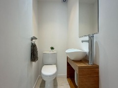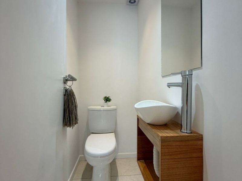 - En baño: box de ducha o pe diluvio, vanitory, griferías fv o similar, revestimiento en porcellanato