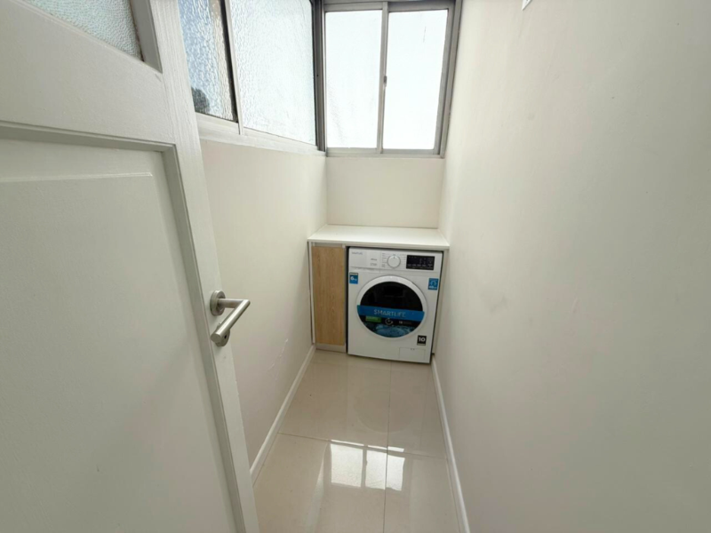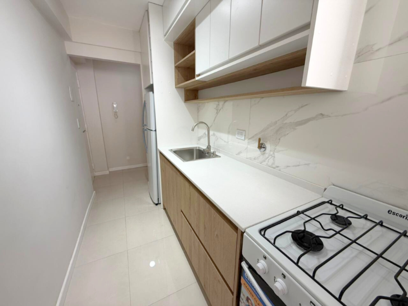 Cocina separada con amoblamiento a medida, ventilación natural y lavarropas.