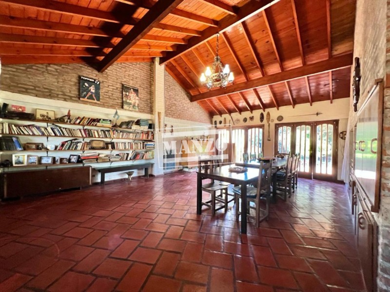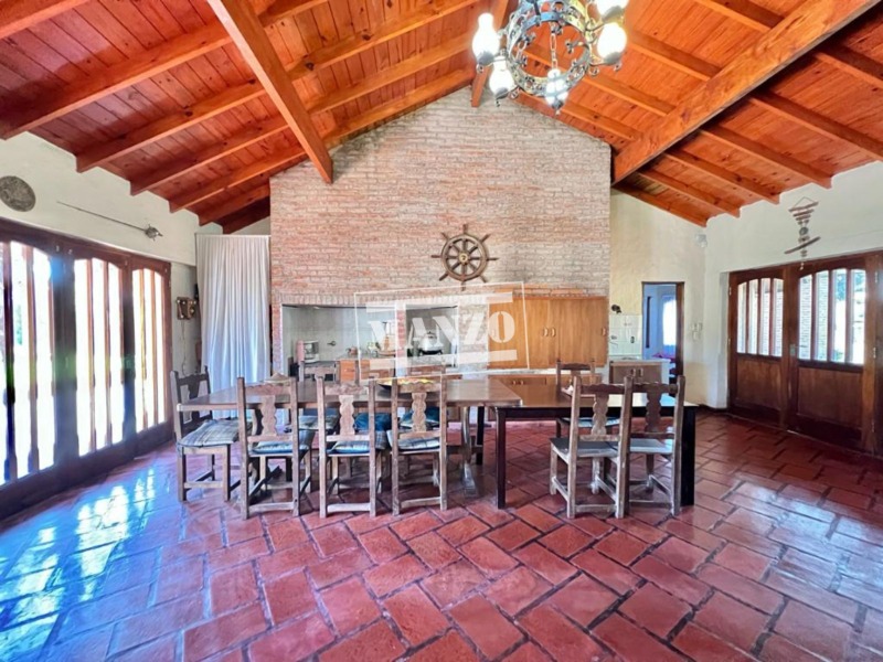 Gran quincho para 40/50 personas, con bacha y parrilla a gas. También puede utilizarse como garaje ya que tiene dos portones y capacidad para 2 vehículos.