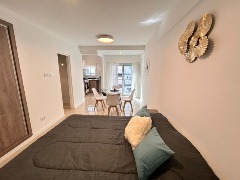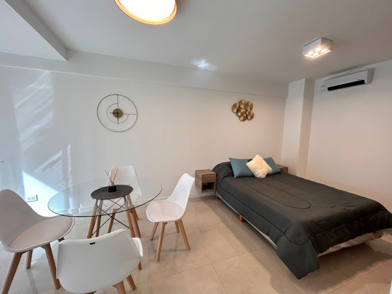 Ambiente amplio a la calle con amplio ventanal y balcón saliente.